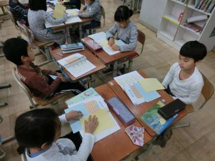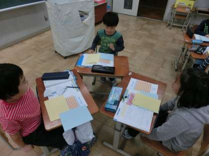 二人組になり,相手が出題した九九について,答えが正しいかどうかをアレイ図で確かめました。