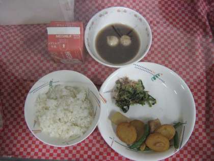給食ではお餅の代わりに白玉団子を使っています。