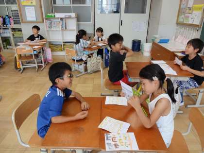 子だもたちが見学して学んできたことを「ステキカード」にまとめました。自分はどういうところにステキを感じたのか,その場所がステキな理由は何なのかを一人一人が考えて,絵と簡単な文で表しています。出来上がった「ステキカード」を使って,たくさんの友だちと自分が見つけたステキを伝え合いました。みんな生き生き楽しそうに活動することができていました。