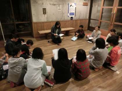 リーダーで集まって約束事や明日の連絡事項について確認したり,グループごとに今日一日の活動の振り返りをしました。