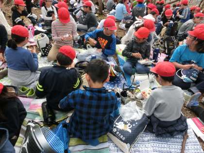 山の上でおいしくお弁当をいただきました。
