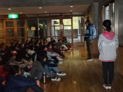 5年生 花脊山の家だより19 公開日 2018/11/04 更新日 2018/11/04 5年生のページ 山の家、3日目の朝を迎えました。 お天気は,時雨模様です。 昨日の登山で,いっぱい体を動かしたので、夜はぐっすり眠ることができました。子供たちは、目覚めもすっきり元気です。今日は,新町小学校だけで朝の集いをしました。 昨日のふりかえりでのお話が伝えられ,今日の活動に生かすことを約束しました。