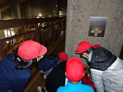 グループで協力して、花や星座のポイントを探します。廊下の壁の下の方やすみっこに隠れているポイントを探し出すのは大変ですが,山の家の新しい発見を楽しんでいる子どもたちです。