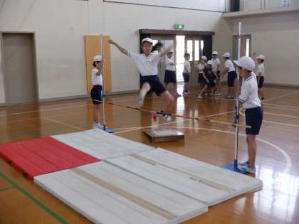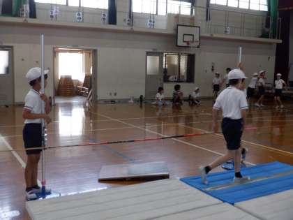 体育で「たかとび」の学習をしました。初めての高跳びだったので,