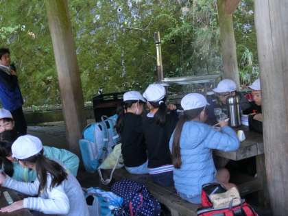 5年生 花脊山の家だより4 公開日 2019/10/22 更新日 2019/10/22 5年生のページ 炊事場に着くと,子どもたちが「先生,見て〜!!」と嬉しそうにお弁当を見せてくれました。 おうちの方が作ってくださったお弁当を食べるのは,とても楽しみだったようです。 子どもたちは,笑顔でおいしそうに食べていました。 朝早くから子どもたちのお弁当の準備,ありがとうございました。