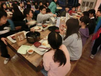 とてもおいしそうなおかずに,子どもたちは何度もおかわりをしていました。