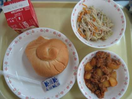 5月31日(火)豚肉のケチャップ煮・たっぷり野菜のビーフン・角チーズ 公開日 2011/06/04 更新日 2011/06/01 ぱくぱく通信 さいの目切りにして蒸したじゃが芋と豚肉をトマトケチャップ・ウスターソース・砂糖で味付けしました。ケチャップ味の大好きな子ども達に人気があります。 6年生の感想 豚肉のケチャップ煮はパンと合っておいしかったです。 たっぷり野菜のビーフンには野菜がいっぱいでおいしかったです。 3年生の感想 ケチャップ煮はケチャップの加減が良かったです。