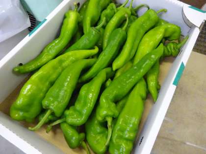 今日の給食は,麦ごはん・牛乳・平天の煮つけ・京野菜のごまみそかけでした。京都でとれた新鮮な「万願寺とうがらし」「賀茂なす」に,手作りのごまみそをかけて食べました。昨日は,伏見とうがらしのおかか煮に,「伏見とうがらし」を使っていました。この2日間,夏の京野菜をおいしくいただくことができました。