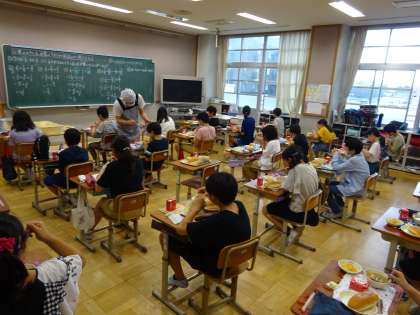 アイルランドの家庭料理であるアイリッシュシチューをイメージして作りました。アイルランドでは羊の肉を使いますが,給食では牛肉を使いました。バジルやガーリックパウダー,オールスパイス,ローリエなど香辛料で香りもよかったです。