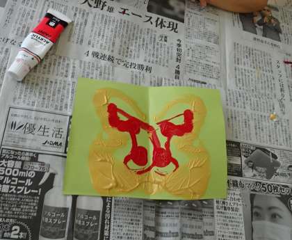 絵の具の置き方によって,おもしろい形になったり,絵の具が混ざり合ったりして,楽しみながらたくさんの蝶を作ることができました。