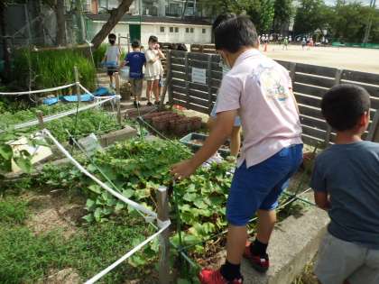 植木鉢を動かしてみたり畑をのぞき込んだりして,夢中で生き物を探していました。