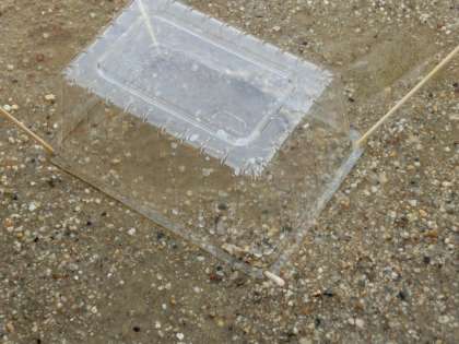 そこで,今回は実際に地面に水を流し,裏返しにしたカップで空気を閉じ込めるとどうなるかを観察しました。