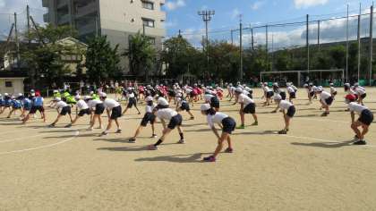 開会式では,始めの言葉と準備体操をしました。