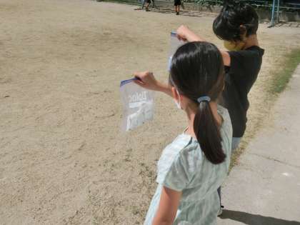 実験した日は,天候にもとても恵まれたので,保冷剤を入れた袋の外側には水滴がたくさんついていました。