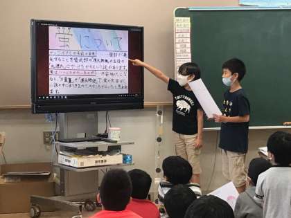 4年生 わくわく学習「ホタルについて」 公開日 2020/10/08 更新日 2020/10/08 4年生のページ わくわく学習で,ホタルについて調べてわかったことを発表しました。 エサや育て方,種類,名前の由来などさまざまな内容についてポスターにまとめました。 知らなかったことや,興味深いことが多くあり,楽しんでお互いの発表を聞いていました。 「早く自分たちで育てたい!」と意欲的でした。