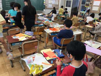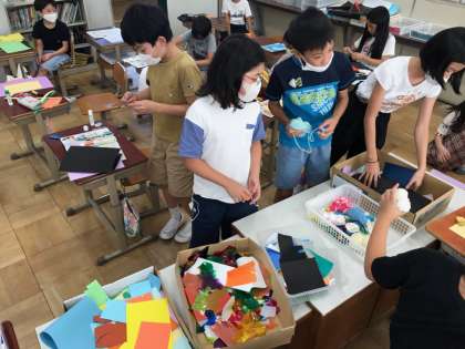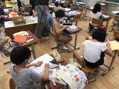 図画工作では,「幸せを運ぶカード」をつくり始めました。