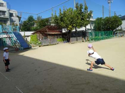 みんなで輪を作って,ボールを投げたり,キャッチしたりしました。