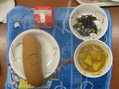 ♪7月12日(火) 黒糖コッペパン 牛乳 チキンカレーシチュー ひじきのソティ