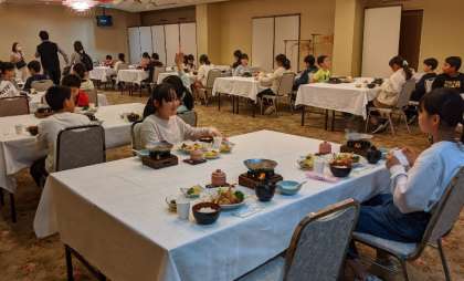 6年生 修学旅行だより 公開日 2020/12/01 更新日 2020/12/01 6年生のページ 夕食は 密をさけるため,2つの部屋に分かれて食べています。 部屋の雰囲気はちがいますが,メニューは同じ。 こちらも,約束を守って静かに食べています。 たくさん並んでいる料理を味わっている子ども達です。 さあ,次のお風呂&お土産のことも,気になってきました!