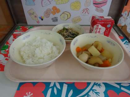 3学期の給食も今日から始まりました。楽しみにしていた子どもたちも多かったようでした。「3学期もよろしくお願いします」と言って給食室に給食を取りに来ていました。