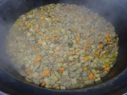 京風みそ汁は,白みそ仕立てです。せりも入っていました。白みそを入れてから少し煮て,とろっとしていました。体の中がポカポカになったようでした。