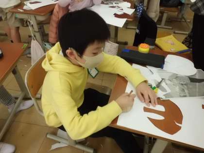 顔には何がついているかな,どんな向きにしようかなどと考えながら作っています。