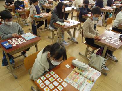 4年生 外国語の学習 公開日 2021/01/19 更新日 2021/01/19 4年生のページ 今日は,ALTのメリッサ先生と一緒に 学習をしました。 野菜や果物の言い方を教えてもらい, それを使ったやり取りや,ビンゴゲームなど 楽しみながら学習をしました。