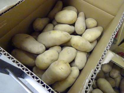 カレー味の肉じゃがでした。朝,給食室に熊本県産のじゃがいもが50キログラム近く届きました。調理員さんが,丁寧に皮や芽をとり,子どもたちが食べやすいサイズに切っていました。