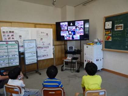 おひさま学級 「上京支部育成学級 第3回みんな元気かい?」 公開日 2021/09/27 更新日 2021/09/27 おひさま学級 上京支部育成学級のみんなと一緒に「みんな元気かい?」を行いました。今回は仁和小学校が司会で,仁和小学校クイズを行いました。友だちががんばっている所を伝え合ったりみんなで楽しく交流を行うことで,交流を深めたりすることができました。 次回は,京極小学校が司会で「みんな元気かい?」を行います。どんな会になるのか楽しみです!