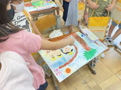 1年生は図工の学習で,お話の絵の学習をしていました。