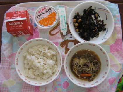 9月29日(木) 肉豆腐 ひじき豆 麦ご飯 牛乳 みかんゼリー