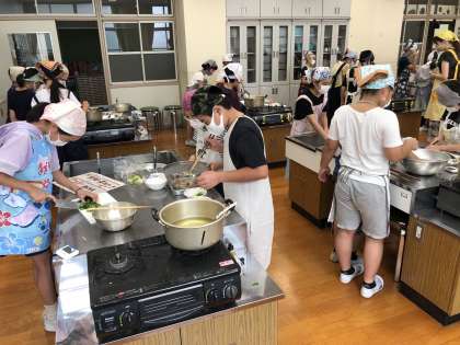 5年生の子どもたちは,「手際よく,安全に,工夫して調理実習に取り組もう」というめあてをもって,調理実習に取り組んでいます。みんなで協力をして調理をする姿が,とても素敵でした!