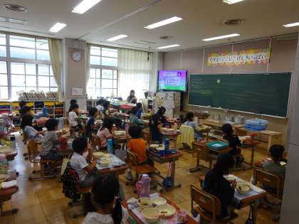 教室で,今日の献立についてのムービーを見ながら食べました。なごみちゃんのおばあちゃんも初登場でした。さばのみそ煮について,教えてもらえましたね♪