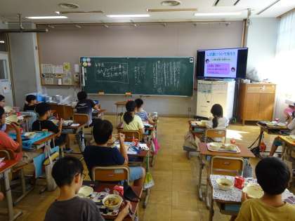 しば漬についてのムービーを見て,しば漬の作られる様子や生産者の思いを学びながらいただきました。