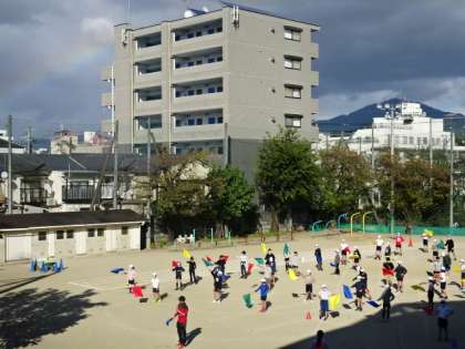 左上には虹が出ています。風が強かったですが最後までよく頑張りました。