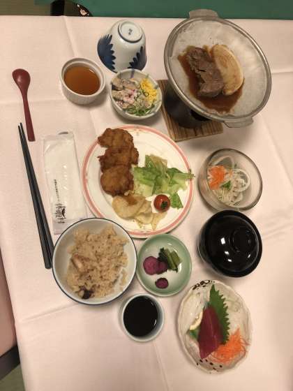 玉ねぎやタコなどの名物に,ステーキやお刺身など,とても豪華なお食事です!