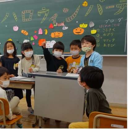 ハロウィンパーティーに向けて,各係はクラスのみんながなかよくにこにこ元気いっぱいになれる出し物を考えて,休み時間や授業時間を使って準備をしました。
