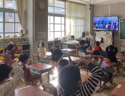 幼稚園の友達の「小学校は楽しいんだ。」という気持ちを高めるために,学校の一日・給食・部屋を紹介する動画を各クラス作ることになりました。