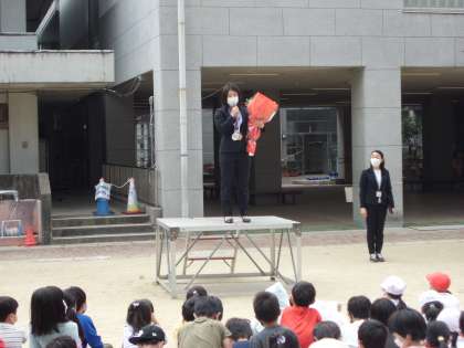小学校の時には,陸上部や音楽部に入って,陸上では大文字駅伝にも出場したことなどを聞かせてもらいました。小学校時代から,何事にも一生懸命,取り組み,努力を重ねてこられたお話をしてくださいました。