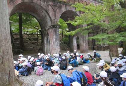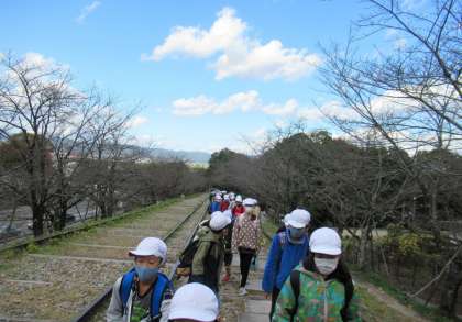 社会見学に行ってきました! 2 公開日 2021/11/10 更新日 2021/11/10 4年生のページ 琵琶湖疏水記念館やインクライン,水路閣などを実際に見て学びました。午後は,1学期に行けなかった松ケ崎浄水場の見学をしました。久しぶりの校外学習で,出かける前からわくわくした気持ちが抑えられない子ども達。しかし,到着したら気持ちをしっかり切り替えて,メモをとりながら熱心に学習していました。見てきたことを生かして,これから学びを深めていきたいと思います。