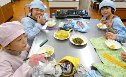 算数の時間に,さつまいもの重さの学習をした後は,家庭科室でさつまいものつるのキンピラとふかし芋を作りました。どちらもおいしく作ることができました。さつまいものつるを使ってキンピラが作れることを初めて知る子どももおり,その美味しさにびっくりする子どももいました。12月にもう1回さつまいもを使った調理を子どもたちと計画しながら行う予定です。次回の調理も楽しみです!