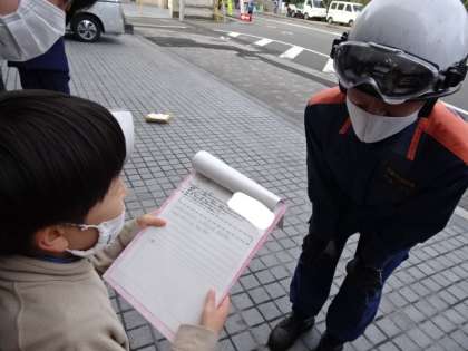 3年生と一緒に,上京消防署へ社会見学に行きました。放水体験,器材に触れる体験,消防自動車の後部座席に乗る体験,大型はしご車訓練見学,インタビュー学習等たくさんの体験や経験をさせてもらいました。本物の器材に触れ,実際に体験できたことがとても嬉しかったようです!今回の社会見学に向けて,事前の準備から丁寧に計画を立てていただきありがとうございました!子どもたちにとって,素敵な1日となりました!