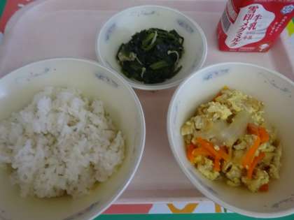 今日の給食の献立は,麦ごはん・牛乳・あげたま煮・ほうれん草の煮びたしでした。あげたま煮は,たまねぎ・にんじん・油あげをけずり節でとっただしでよく炊いており,最後に卵でふんわりととじています。食べるとホッとする味になっていました。