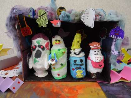 おひさま学級 「校内作品展」 公開日 2022/03/01 更新日 2022/03/01 おひさま学級 3月2日(水)〜3月4日(金)に,校内作品展を行います。おひさま学級は,おひさま学級の前の掲示板に,絵画の作品を展示しています。そして,ひまわりホールに,立体作品「ゆうれい列車」と各学年で取り組んだ作品を展示しています。 子どもたちの力作を,ぜひご覧ください。