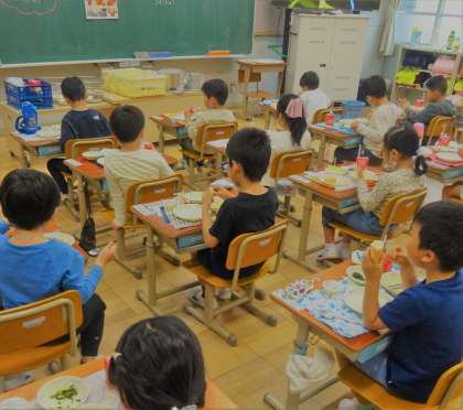 今年も黙食が続きますが,1年生はオッケーサインを出して,静かにおいしさを共有できました。これから,給食を通していろんな食べ物に出会っていきましょうね♪