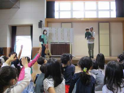 1年生は,入学のお祝いとして,PTAから防犯ブザー,教育後援会からブザーのカバーをいただきました。今日は,使い方と使う時の4つの約束を,PTAと地域の方から教えてもらいました。