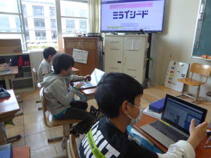 5年生 ミライシードに挑戦 公開日 2022/04/20 更新日 2022/04/20 5年生のページ 算数の学習でミライシードに挑戦しました。久しぶりのミライシードでしたがみんな一生懸命頑張っていました。学力の定着を目指して続けていきます。