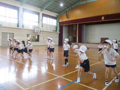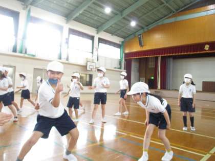 2年生は体育の体ほぐしの学習で,だるまさんがころんだや猛獣狩りなどの遊びをしました。