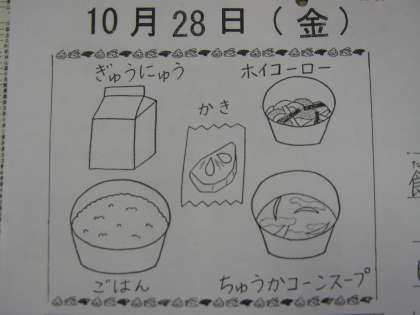 10月28日(金) 回鍋肉 中華コーンスープ ご飯 牛乳 柿