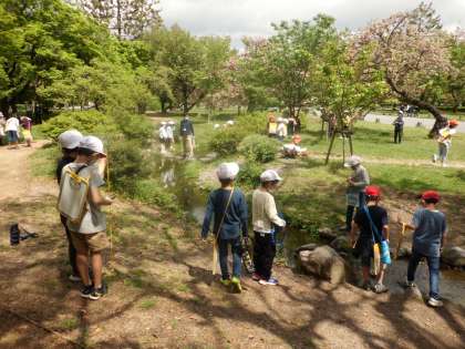 理科の学習で,自然の観察をするために京都御苑へ行きました。天気にも恵まれ,子どもたちはたくさん自然とふれあうことができました。蝶などの昆虫や,様々な花を観察することができました。